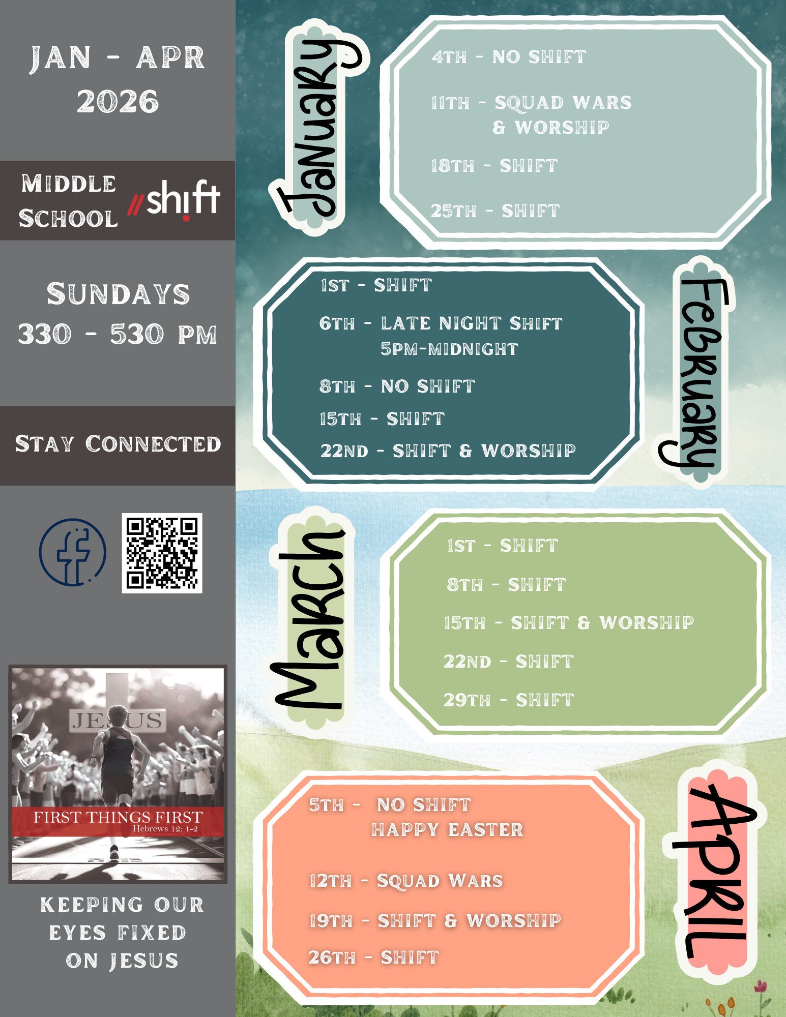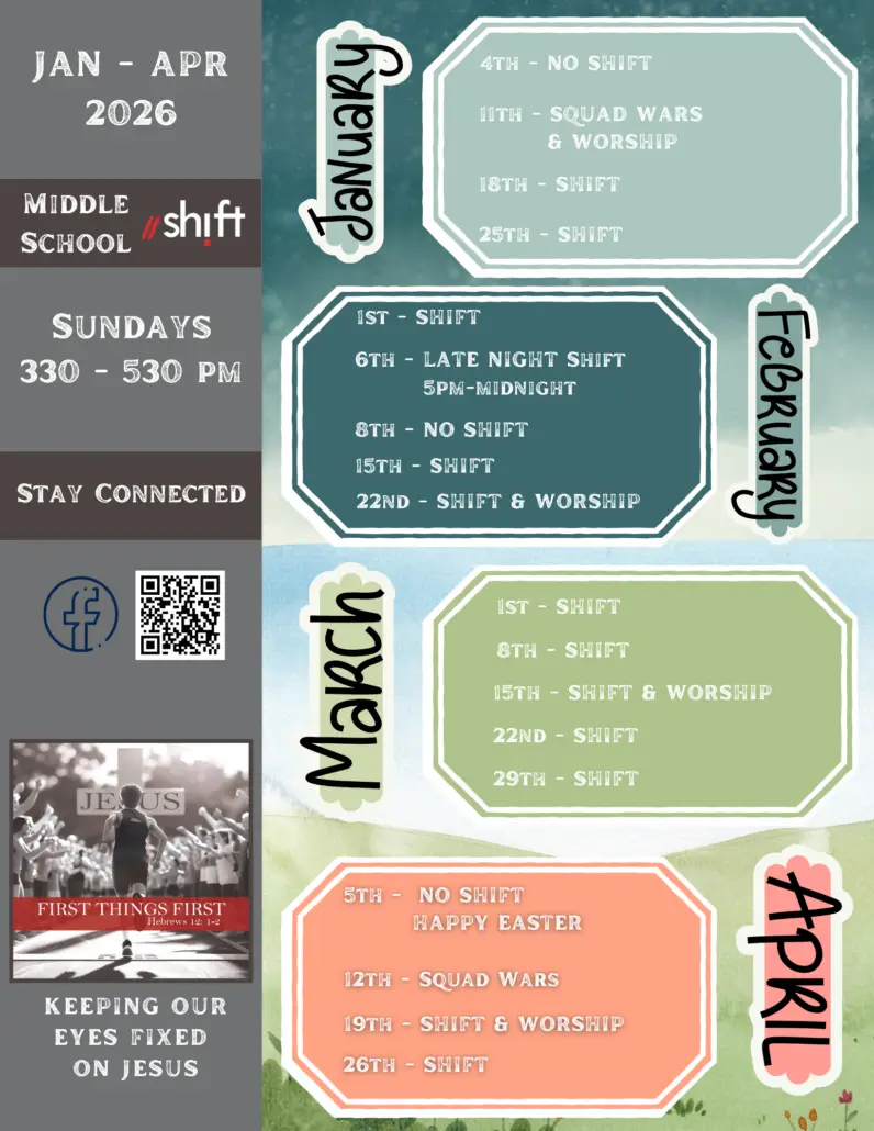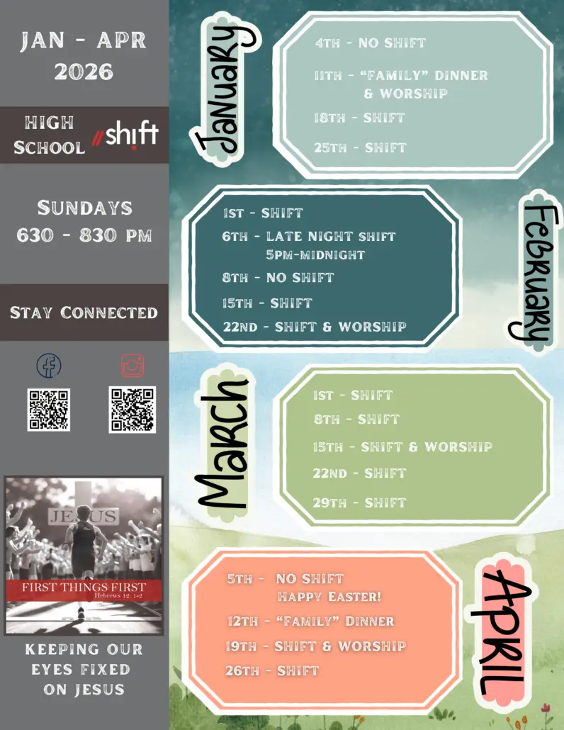 It is no surprise that the way middle and high school students interact, engage, think, and process information are very different. God has given each phase unique characteristics, desires, and strengths. By separating the two age groups, we are able to create environments and experiences tailored specifically to each phase of life. Another benefit to providing two different experiences is that your student can experience different activities and milestones throughout their time as a student. It’s exciting to know that once they move from Kids Min to Shift they get to experience new things and then again when they move from middle school Shift to high school Shift!